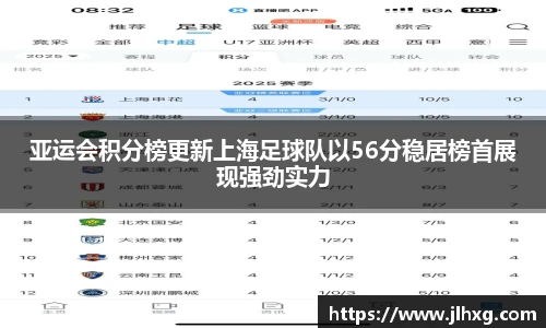 亚运会积分榜更新上海足球队以56分稳居榜首展现强劲实力
